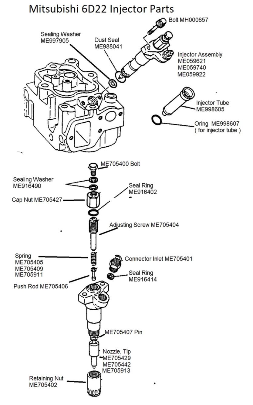 Mitsubishi 6D22 6D22T Injectors Parts List